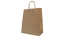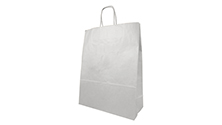 Для производства пакетов с кручеными ручками используем белый и коричневый крафт плотностью от 70 г/м? до 100 г/м?, поэтому они выдерживают вес до 12 кг.
